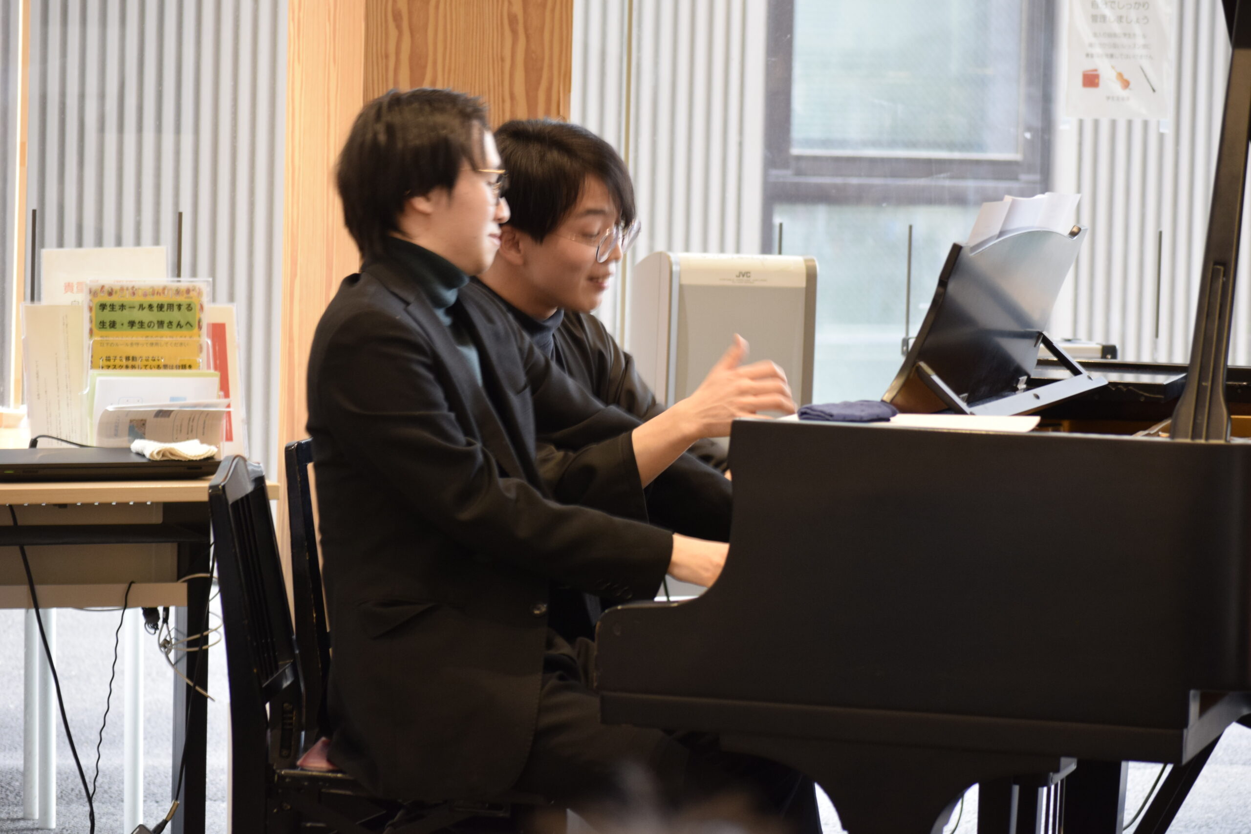2月のロビーコンサートは、音楽教室(仙川、横浜)の卒室生でもある仙川教室のピアノ科講師、松田龍先生と山本樹生先生の演奏でした。