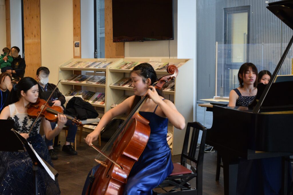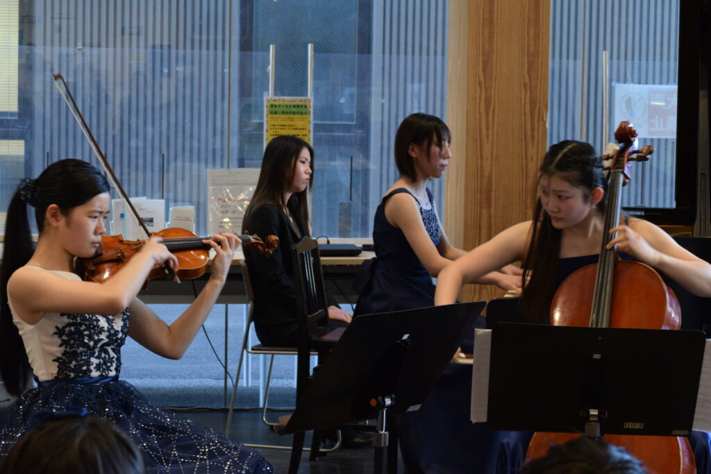 今年度最後のロビーコンサートは、西尾美香さん(vl)高階杏さん(vc)森澤歩さん(pf)の高校1年生3人による、メンデルスゾーンのピアノトリオ第1番の演奏でした。