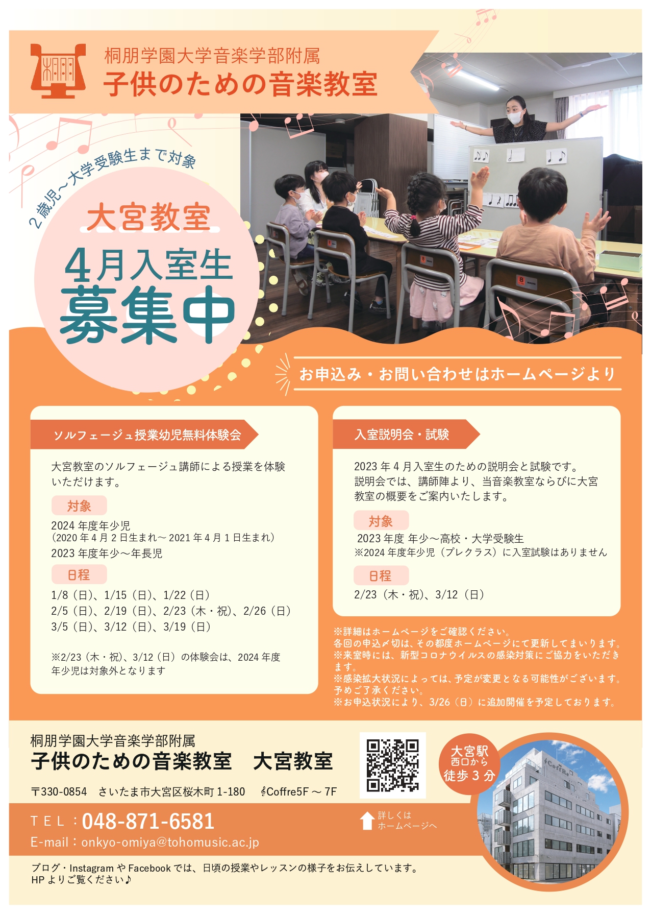 また、 ソルフェージュ無料体験会を開催中です。