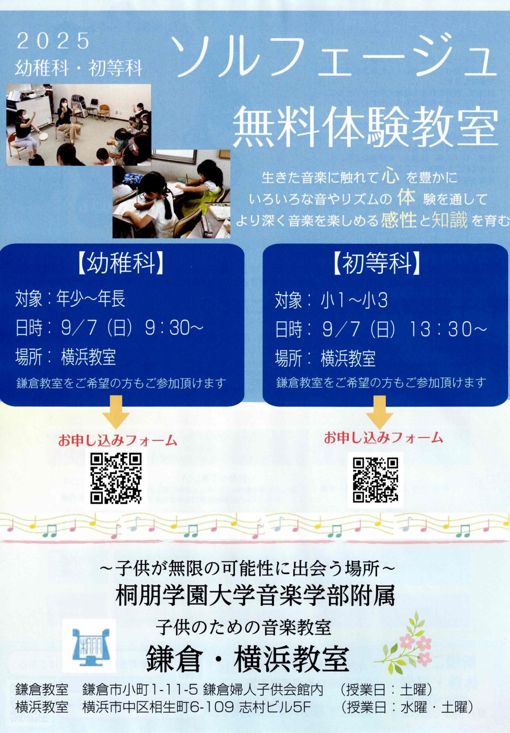 幼稚科・初等科 無料体験教室のお知らせ