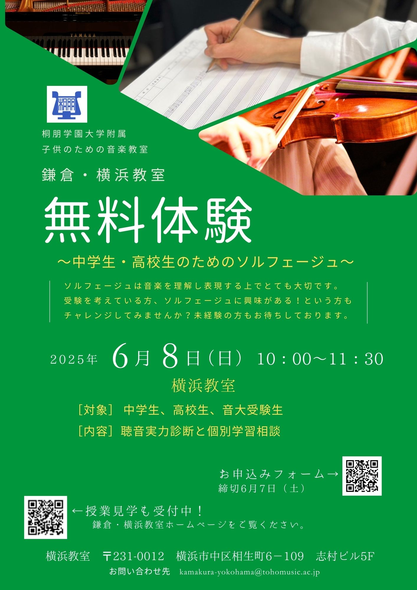 2025年度 中学生・高校生・音大受験生向け 無料体験のお知らせ