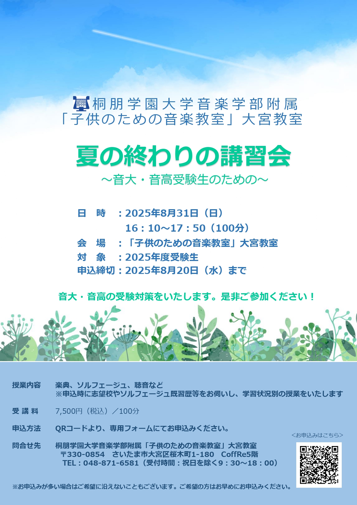 2025年度受験生に向けた、音大・音高の受験対策講座を実施します。