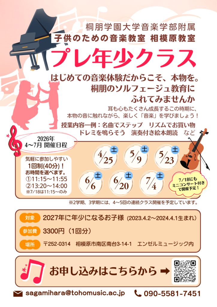 2026年度 相模原教室 プレ年少クラスのお知らせ